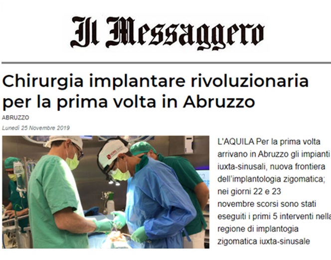 INNOVAZIONE IN ABRUZZO: IMPIANTI ZIGOMATICI IUXTA SINUSALI